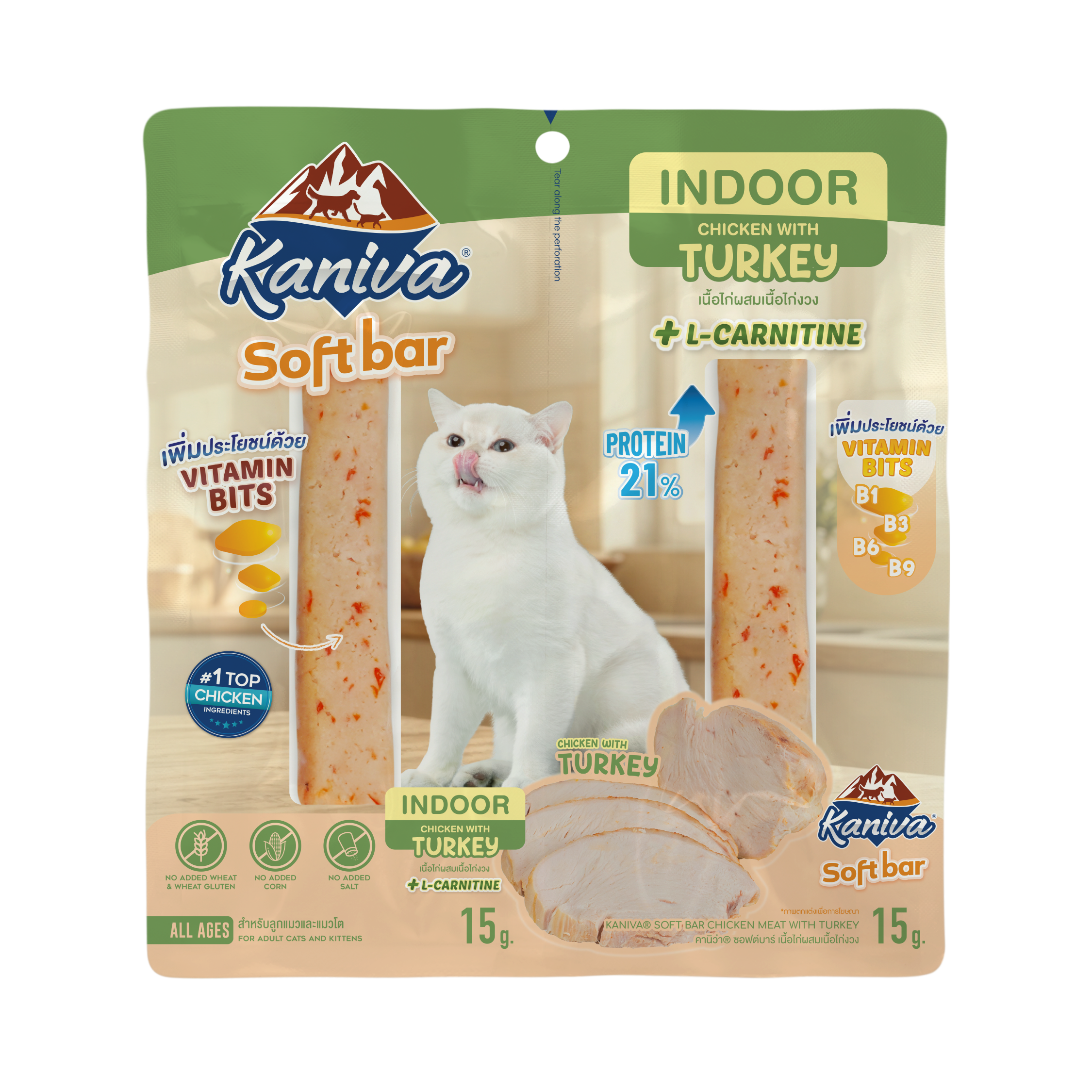 KANIVA Soft Bar (คานิว่า ซอฟท์บาร์) เนื้อไก่ผสมปลาแซลมอน สูตรโอเมก้าพลัส - บํารุงเส้นขน, ผิวหนัง และลดการอักเสบ