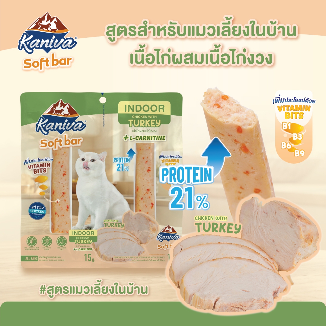 KANIVA Soft Bar (คานิว่า ซอฟท์บาร์) เนื้อไก่ผสมเนื้อไก่งวง สูตรแมวเลี้ยงในบ้าน สำหรับแมวอายุ 4 เดือนขึ้นไป