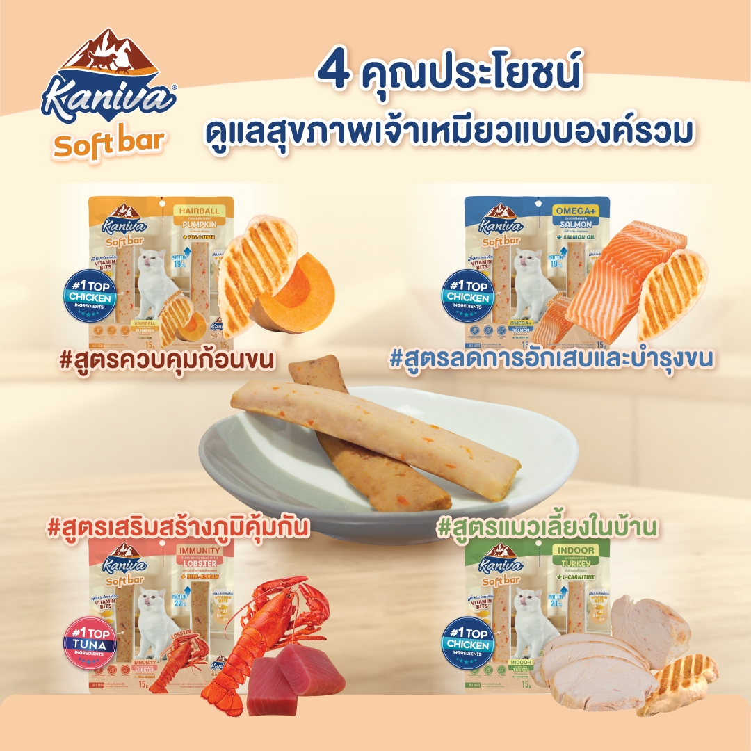 KANIVA Soft Bar (คานิว่า ซอฟท์บาร์) ปลาทูน่าเนื้อขาวผสมล็อบสเตอร์ สูตรเสริมสร้างภูมิคุ้มกัน สำหรับแมวอายุ 4 เดือนขึ้นไป