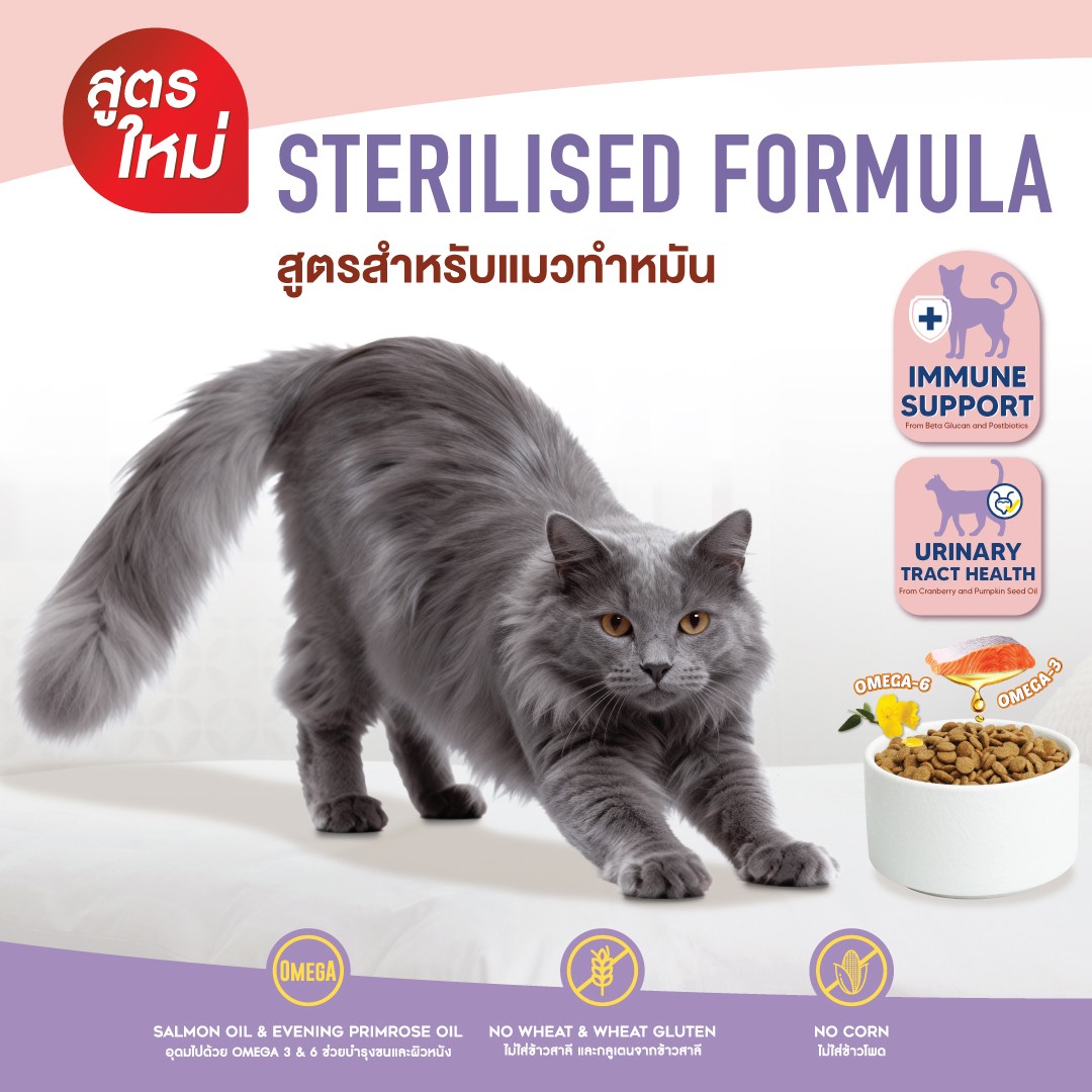 วัตถุดิบที่ไม่ผ่านตัดต่อพันธุกรรม โดยมีการควบคุมกระบวนการผลิตตั้งแต่ต้นจนถึงปลายทาง ซึ่งช่วยลดโอกาสในการแพ้ของแมวได้ดียิ่งขึ้น