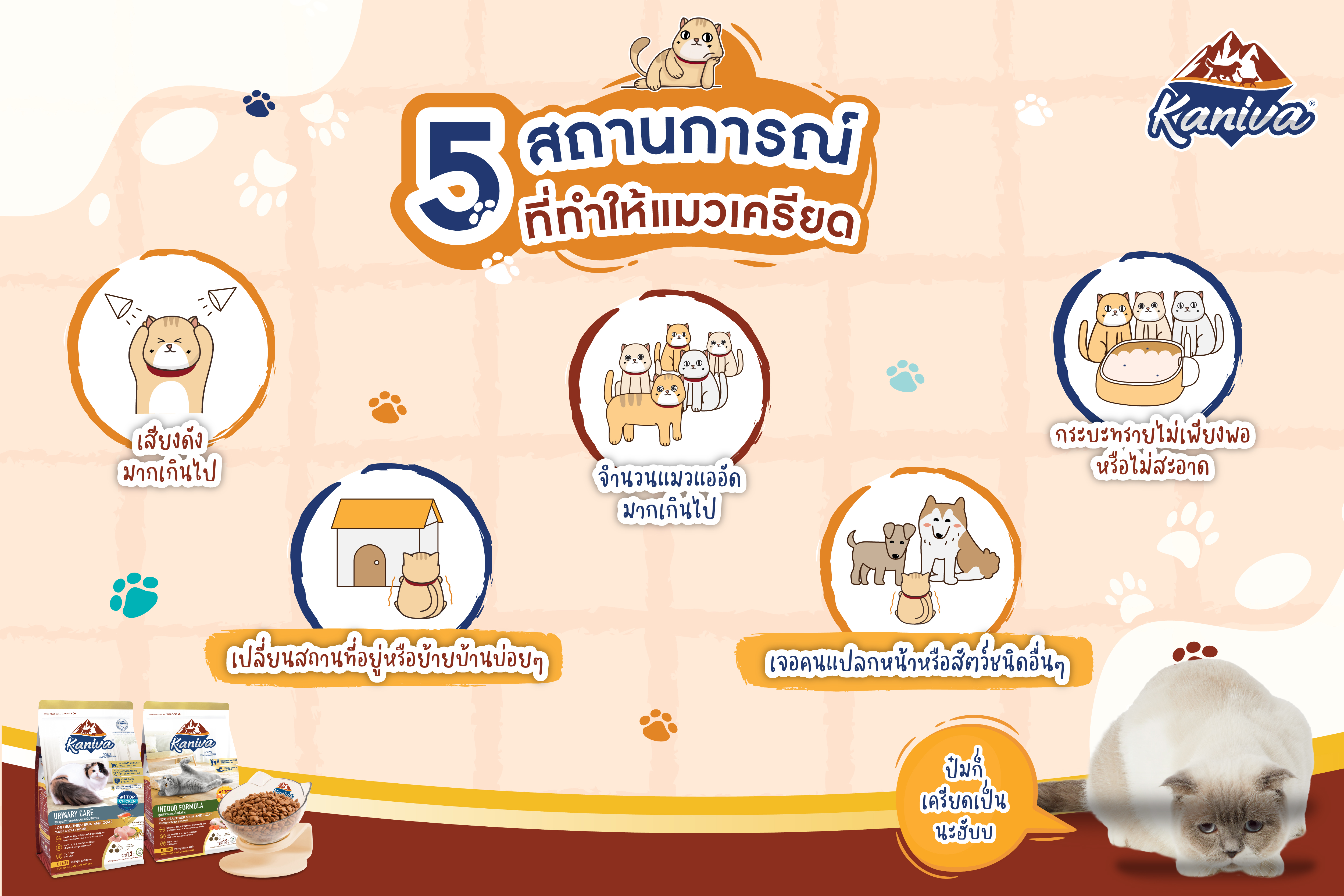 เสียงดังหรือสิ่งเร้าที่รบกวน : แมวมีความไวต่อเสียงมาก หากมีเสียงดังจากการก่อสร้าง การจราจร หรือการที่มีสัตว์อื่นมารบกวน ก็จะทำให้แมวรู้สึกเครียดได้