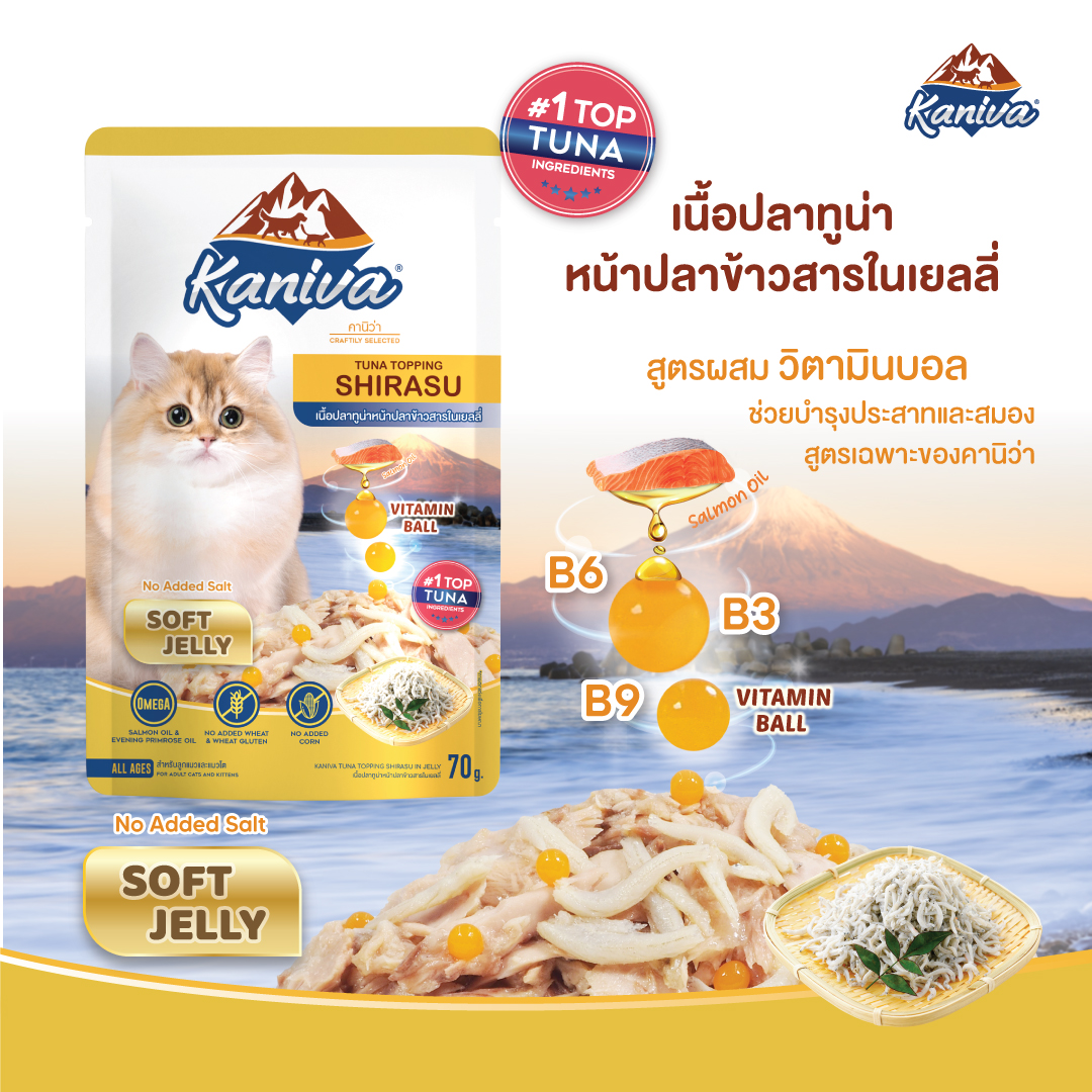Kaniva believes that every cat deserves to be healthy inside and out! We craftily selected every single ingredient to ensure that Kaniva is produced as a complementary cat food. Created with a determination to satisfy your cat’s unique needs, Kaniva pouch has no added corn, wheat and wheat gluten. Every bite features real tuna as the prime ingredient, added with chicken and vitamins balls. In the end, with a bowlful of Kaniva, your cats will be more than ready to ‘meow’.