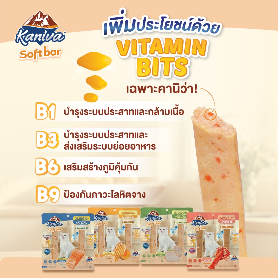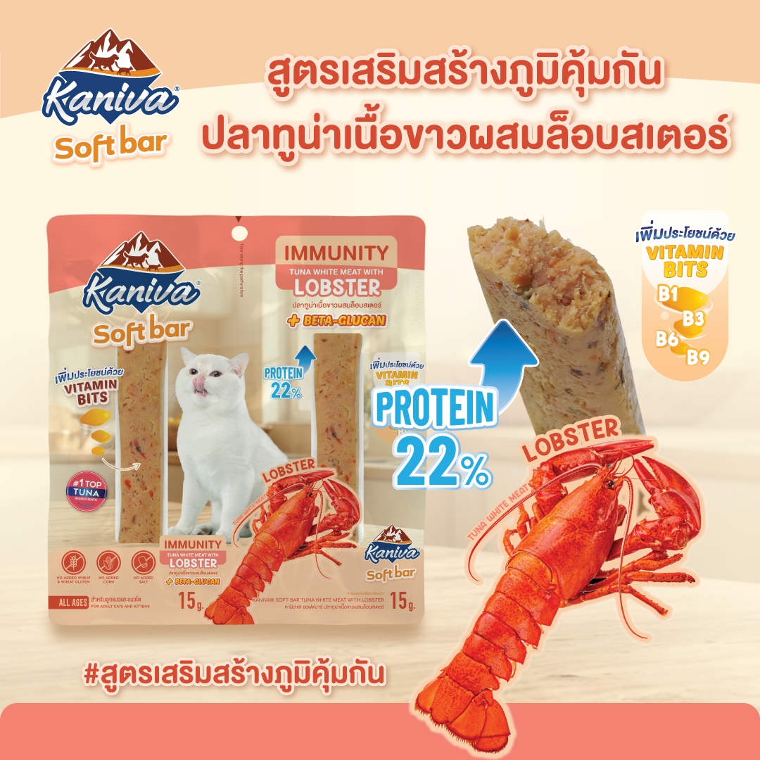 KANIVA Soft Bar (คานิว่า ซอฟท์บาร์) ปลาทูน่าเนื้อขาวผสมล็อบสเตอร์ สูตรเสริมสร้างภูมิคุ้มกัน สำหรับแมวอายุ 4 เดือนขึ้นไป
